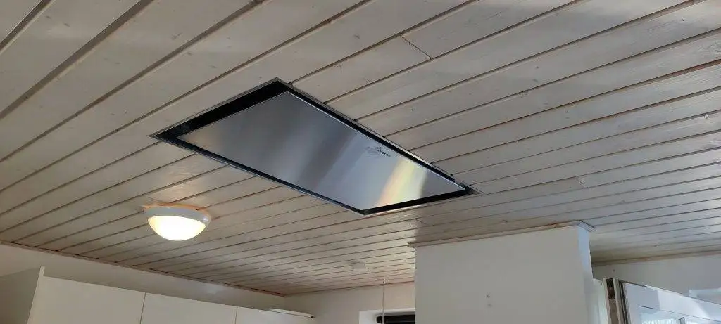 Eneste løsning i vores tilfælde var en emhætte, der sidder i loftet, men hvad gør det, når det bare fungere!
